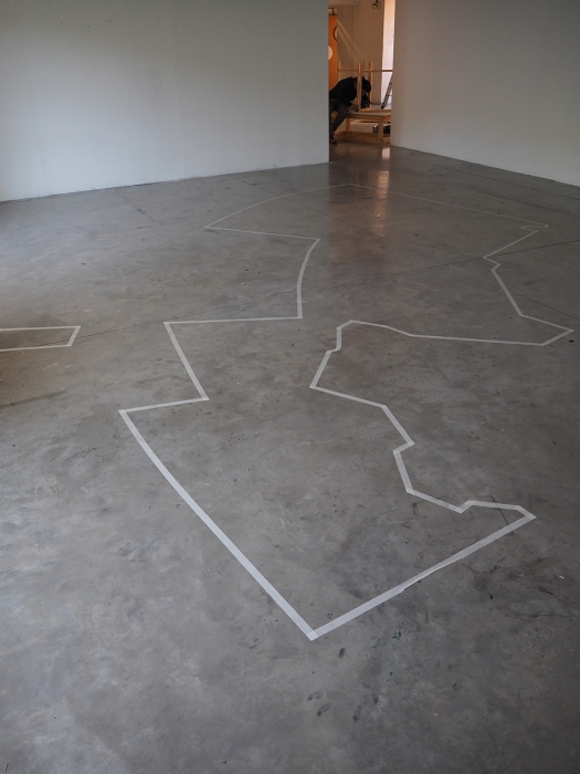 Installation, white adhesive, 3d print