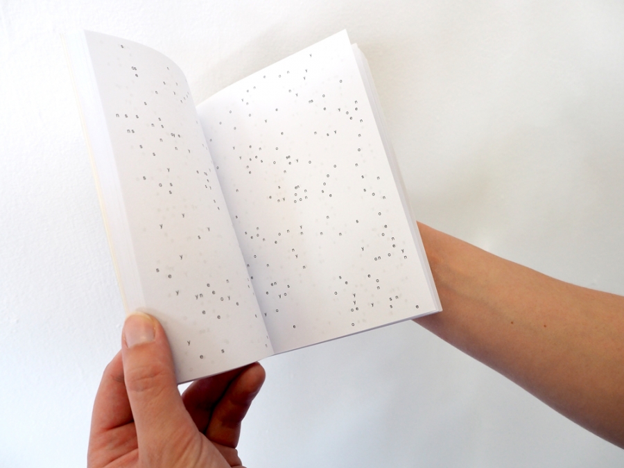Computer generated text, choosing from an array "y","e","s"," ","n","o". Ending when matched to "yes". hand bound inkjet paper, edition of 1 12x16cm, 652 pages